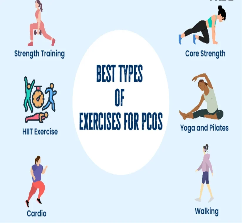 A balanced routine that combines cardio, strength, and relaxation exercises is ideal for PCOS management.