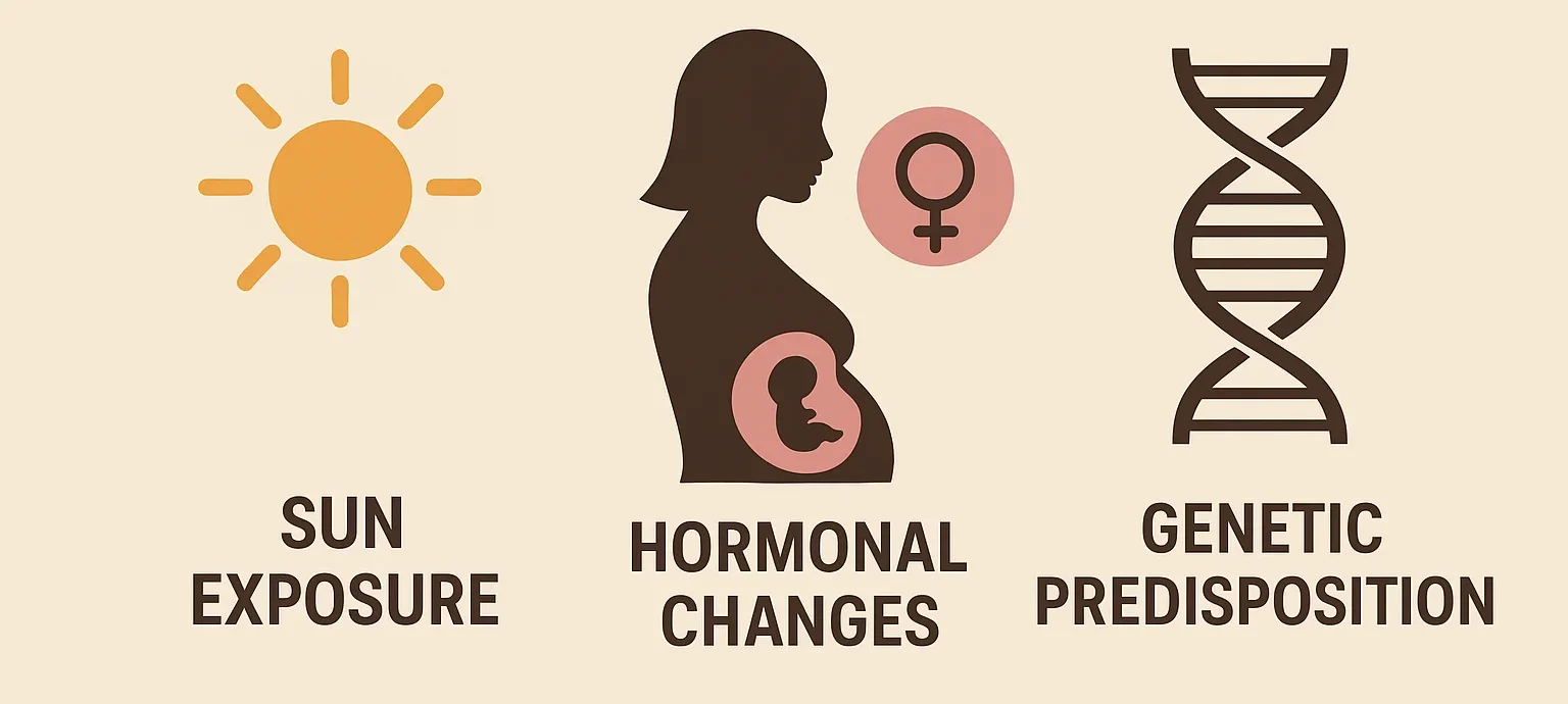 Melasma is thought to result from an overproduction of melanin, the pigment that gives skin its color. This process is influenced by several interrelated factors.